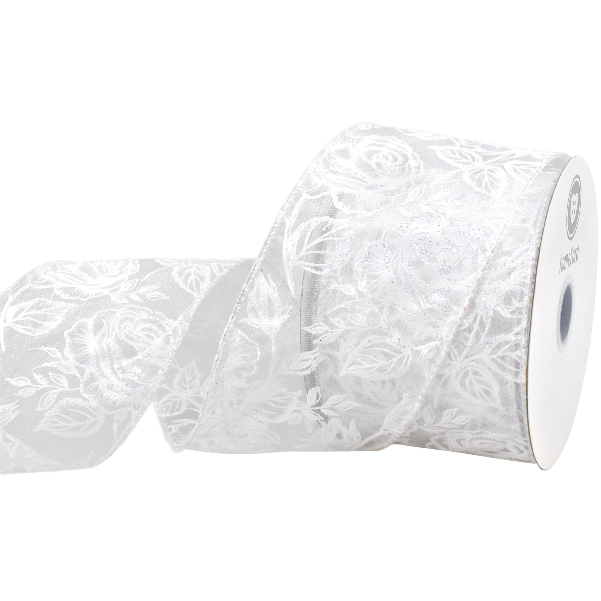 Create dreamy, whimsical décor with our Glittered Roses Sheer Organza Wired Ribbon. The airy organza fabric combined with sparkling rose motifs gives this ribbon a delicate, romantic feel that's ideal for floral displays, gift décor, and seasonal accents. From weddings to Valentine's décor and elegant home displays, this ribbon offers a stunning way to add floral sparkle and sophistication.
